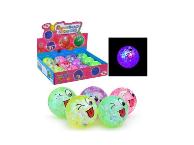 Мяч каучук. арт. 1779 Двухцветный Подмигивающий смайлик свет. и мишура (12 шт.) в кор.