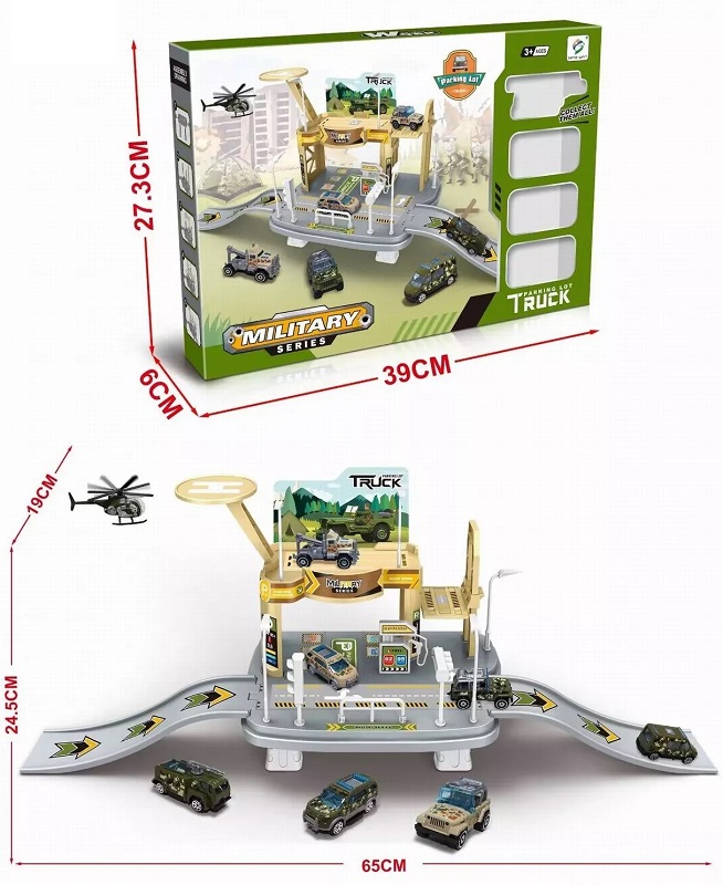 Парковка арт. 8558 "Военная база" 3 машины металл, вертолет в кор.39*6*27,3