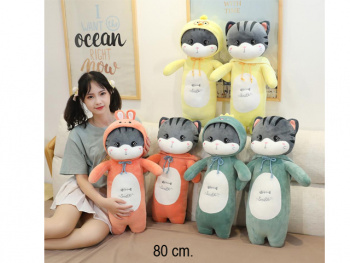 - им Кот арт. 90421-12/230202-14/90529-6 В комбинезоне цвета микс 80 см в пак.)×им Кот арт. 90421-12/230202-14/90529-6 В комбинезоне цвета микс 80 см в пак.)"Популярная новинка, симпатичная Длинная Подушка, кошка, мягкие плюшевые животные, плюшевые игрушки, кавайная удобная мягкая кошка, кукла, плюшевый подарок для детей