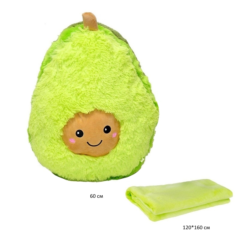 - им Авокадо арт. 90221-1/1224-8/801932 Ворсистое с пледом 120*160 см в пак.)×им Авокадо арт. 90221-1/1224-8/801932 Ворсистое с пледом 120*160 см в пак.)Мягкое, милое, нежное плюшевое авокадо можно использовать в качестве подушки, украшения для дивана или же просто как игрушку для ребенка. Игрушка очень приятна на ощупь. В комплект входит плед, такой же мягкий и уютный, который будет поднимать настроение в прохладные вечера. Подушка Авокадо 3 в 1 станет отличным помощником в путешествиях и выездах на природу. Игрушка держит свою форму и без пледа.
