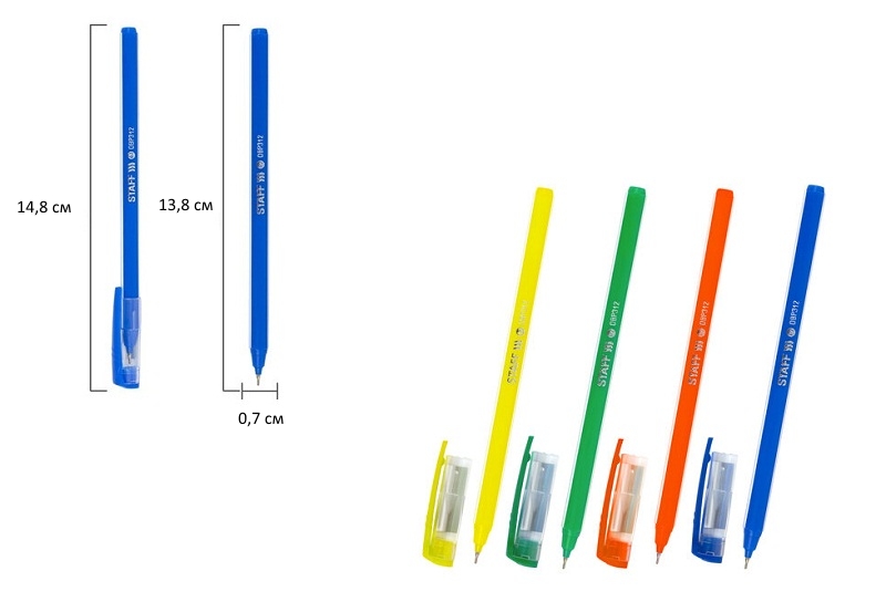 кс_Ручка шариковая масляная арт.143012 STAFF Basic"OBP-312"СИНЯЯкорп.ассорти узел0,7мм лин.письма0,3