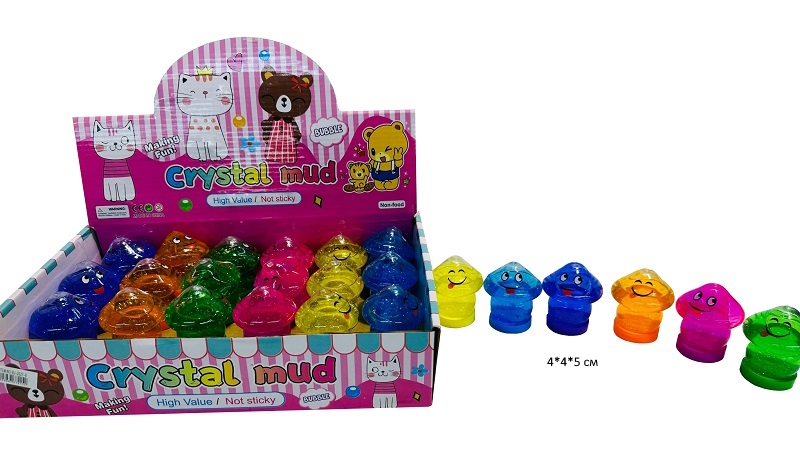 Лизун арт. 2027-6 "Гриб" мордашка прозрачный цвета микс (24 шт.) шоубокс•