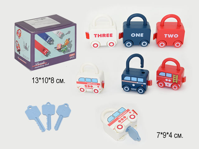 Размер: d 7 см121.71 руб. 243.42 руб. - Игра головоломка арт. MT033512 Машинки с ключами в кор._×Игра головоломка арт. MT033512 Машинки с ключами в кор._Обучающая игра головоломка "Машинки и ключики" понравится любому ребенку. В комплект входят 3 машинки и 3 ключика. У каждой машинки есть замочек и ключик, который подходит только к ней. Игра заключается в том, что ребёнку необходимо подобрать правильный ключик к каждой машинке. На каждой машинке с одной стороны нанесены точки, соответствующие цифре, а с другой — эта цифра написана на английском языке. На каждом ключике тоже есть цифры, таким образом, выучив их, малышу будет легче подобрать подходящий ключик. Головоломка развивает мелкую моторику, знание цвета, цифр и логическое мышление. У "машинок-замочков" крутятся колеса, и ими можно играть как обычными машинками. Игрушка предназначена для детей от 1,5 лет.