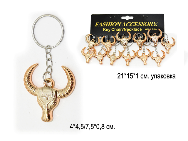 Брелок арт. 008-12 Бык "Голова золото" (12 шт.) в пак.