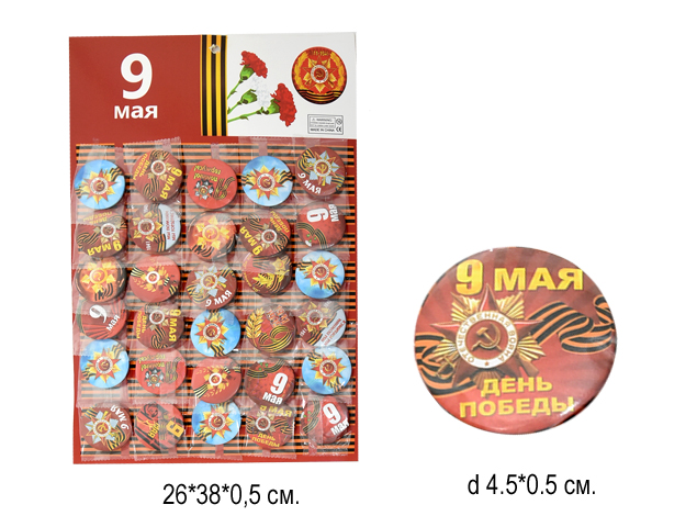 Значок арт. 209924 "9 мая" в ассортименте 30 шт. на листе