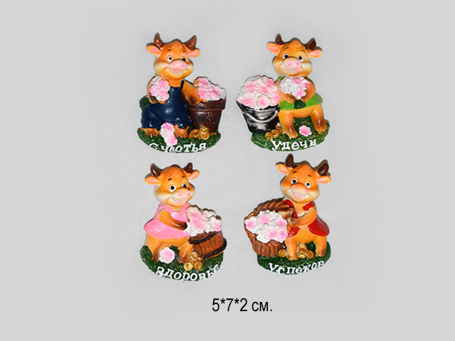 Магнит керамический арт. 023-B Бычок/Коровка с корзиной цветов 1шт. (24шт.) в кор.