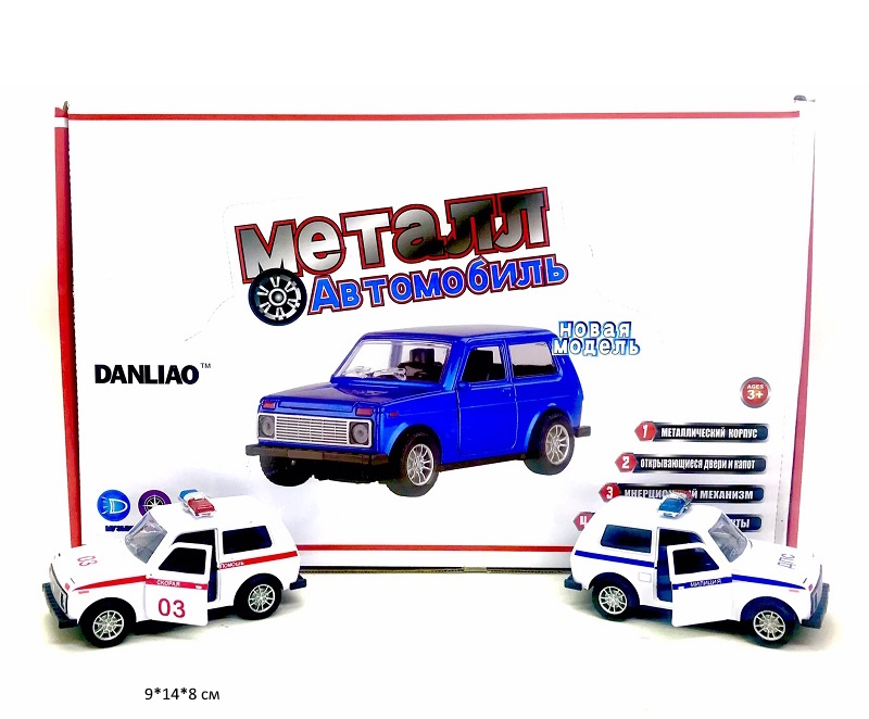 Модель металл. арт. 1801AD ВАЗ Нива Скорая, Милиция инерц. (12 шт.) шоубокс_