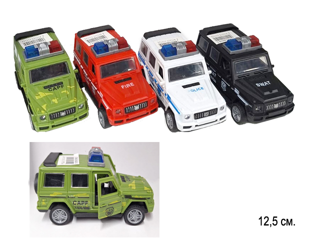 Модель инерц. арт. 888338 Спецслужбы джип 12,5 см 4 вида (12 шт.) шоубокс= /600 шт./