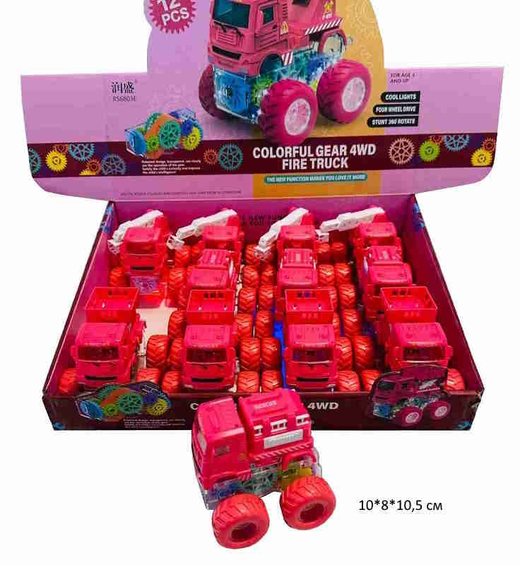Машина на батар. арт. RS6803E Пожарная ассорти шестеренки, свет, вращение 360°(12 шт.) шоубокс•